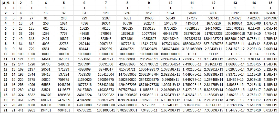 increases, the exponential function speeds past the polynomial function, so eventually, it will make more sense to increase the alphabet size. Our eyeballing has let us down.
