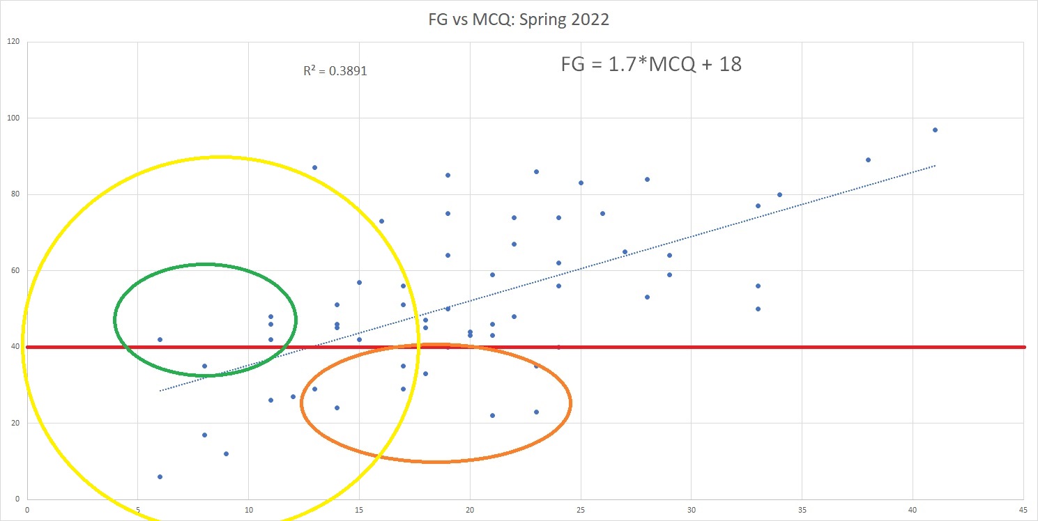 Here is a graph showing the relationship between Concept MCQ Performance and Final Grade: