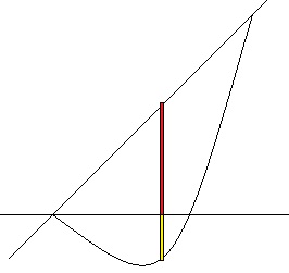 In this case the height of the strip (corresponding to height of the red plus the yellow) is given by . This is directly analogous to the situation where we find the area between two curves as the integral of “top curve minus bottom” curve. Therefore I should have never put the
